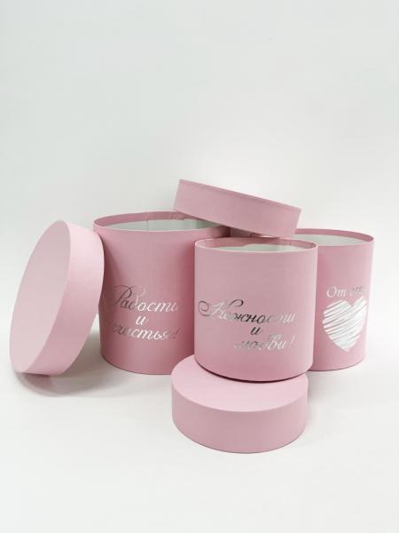 Коробки круглые без крышек Набор из 3х (13*13/16*16/18*18) с тиснением "Пожелания" светло-розовый