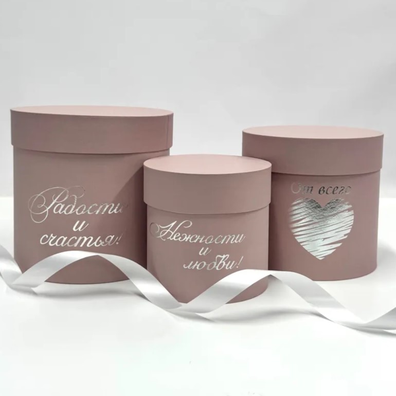 Коробки круглые Набор из 3х (13*13/16*16/18*18) с тиснением "Пожелания" пыльная роза