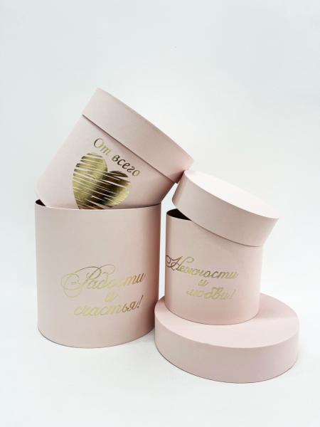 Коробки круглые Набор из 3х (13*13/16*16/18*18) с тиснением "Пожелания" светло-розовый