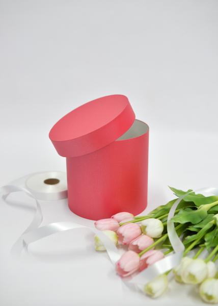 Коробка круглая 16*16 бумага дизайнерская Красное дерево