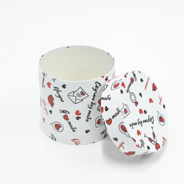 Коробка круглая 13*13 "Я люблю тебя" рисунок черный/красный на белом