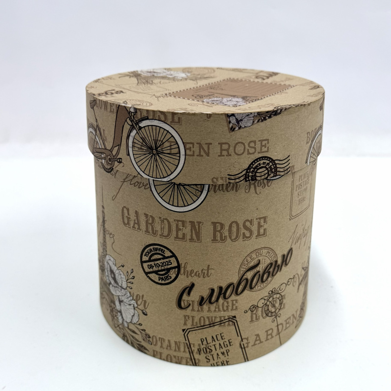 Коробка круглая 16*16 Париж С Любовью! белый на коричневом фоне