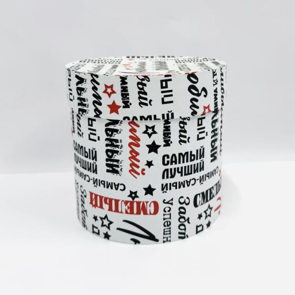 Коробка круглая 16*16 "Самый самый" рисунок черный/красный на белом