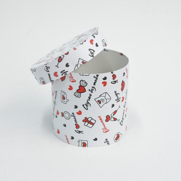 Коробка круглая 16*16 "Я люблю тебя" рисунок черный/красный на белом