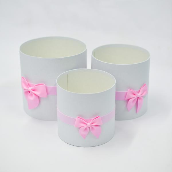 Коробки круглые без крышек Набор из 3х (13*13/16*16/18*18) с бантиком Белый