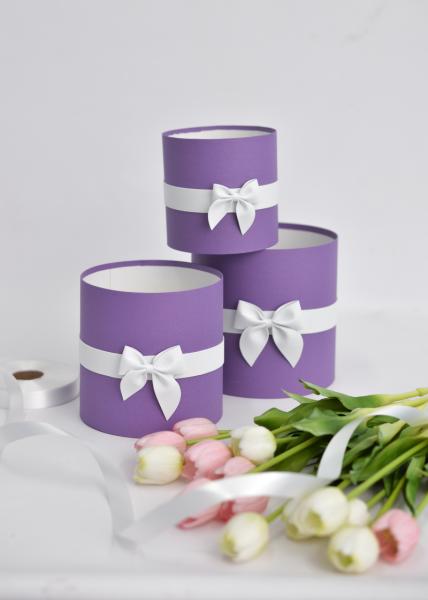 Коробки круглые без крышек Набор из 3х (13*13/16*16/18*18) с бантиком Фиолетовый