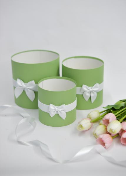Коробки круглые без крышек Набор из 3х (16*16/18*18/20*20) с бантиком оливковый