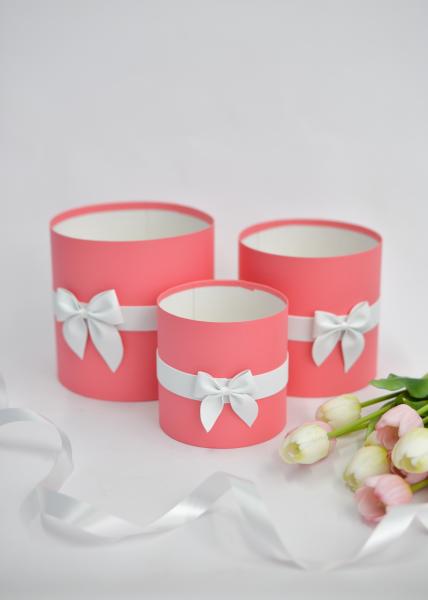 Коробки круглые без крышек Набор из 3х (13*13/16*16/18*18) с бантиком Светло-коралловый