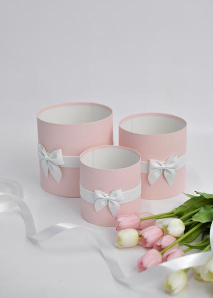 Коробки круглые без крышек Набор из 3х (13*13/16*16/18*18) с бантиком Светло-розовый