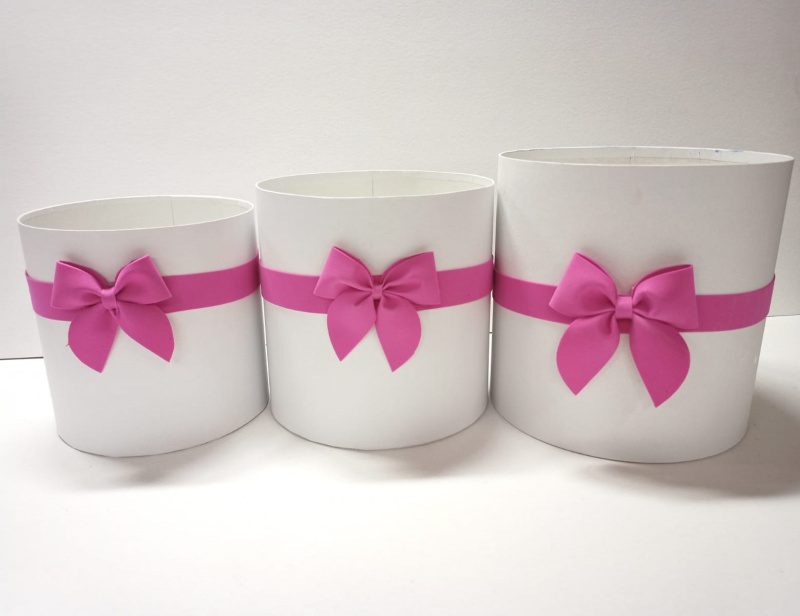 Коробки круглые без крышек Набор из 3х (16*16/18*18/20*20) с бантиком белый