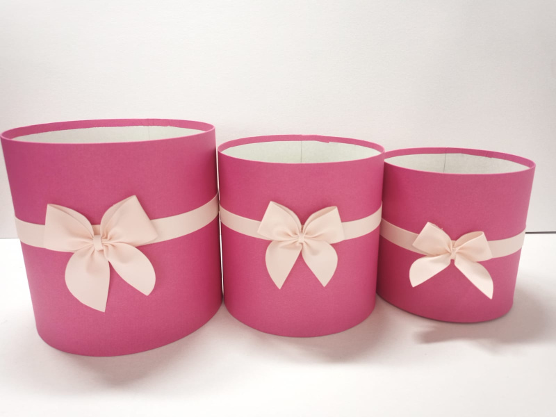 Коробки круглые без крышек Набор из 3х (16*16/18*18/20*20) с бантиком фуксия