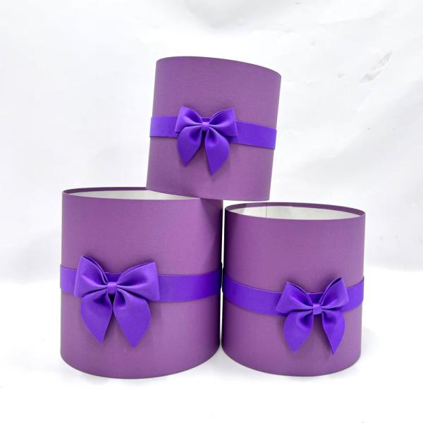 Коробки круглые без крышек Набор из 3х (16*16/18*18/20*20) с бантиком сиреневый