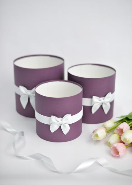 Коробки круглые без крышек Набор из 3х (16*16/18*18/20*20) с бантиком сливовый