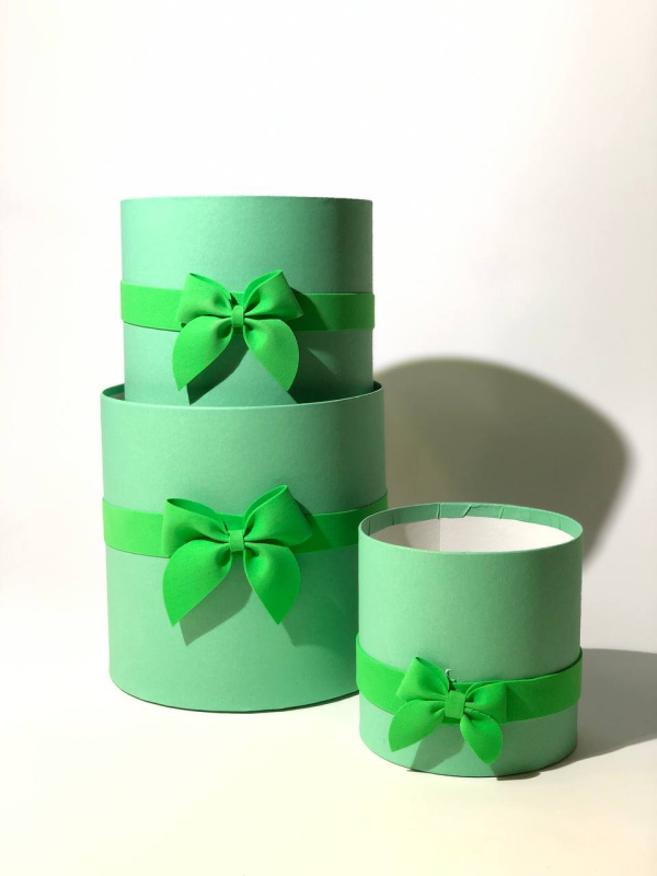 Коробки круглые без крышек Набор из 3х (16*16/18*18/20*20) с бантиком зеленый