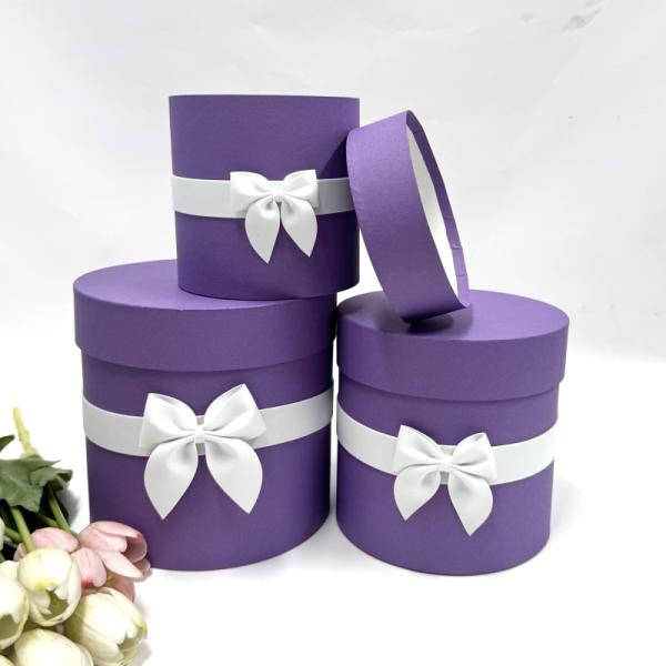 Коробки круглые Набор из 3х (13*13/16*16/18*18) с бантиком Фиолетовый