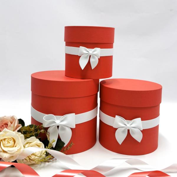 Коробки круглые Набор из 3х (13*13/16*16/18*18) с бантиком Красный