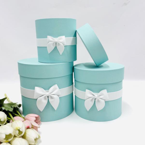 Коробки круглые без крышек Набор из 3х (16*16/18*18/20*20) с бантиком синий