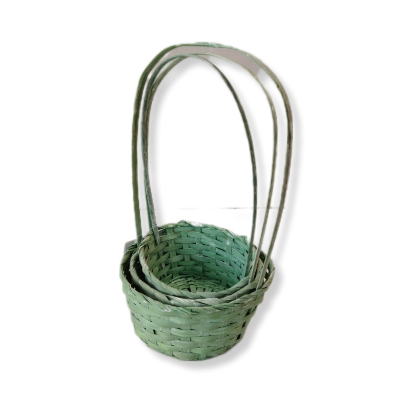 Набор корзин плетеных (бамбук) D16xH13/32, D18xH10/34, D21xH10/36, 3шт св.зел.+бел.