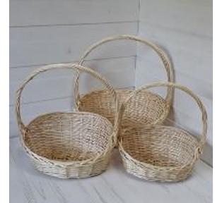 Корзины из ивы 44*33*14*40, 38*28*12.5*35, 32*23*11*30, 3шт, овал, белый