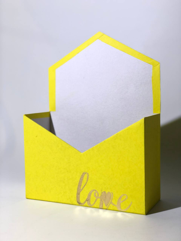 Конверт 180*240*70 с золот. тиснением "love" желтый