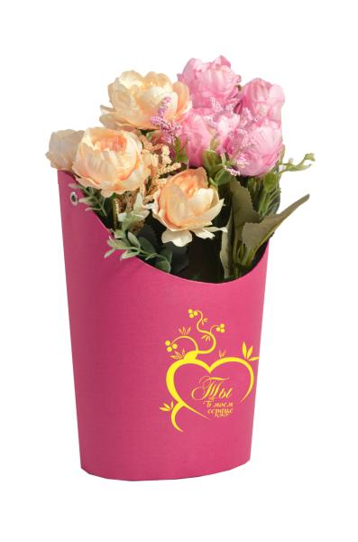 Ваза Овал 14*17*22 с тиснением "Ты в моём сердце" светлая фуксия