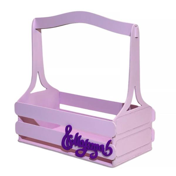 Декоративный ящик из фанеры квадратный с ручкой 140*125*h270 нежно-сиреневый