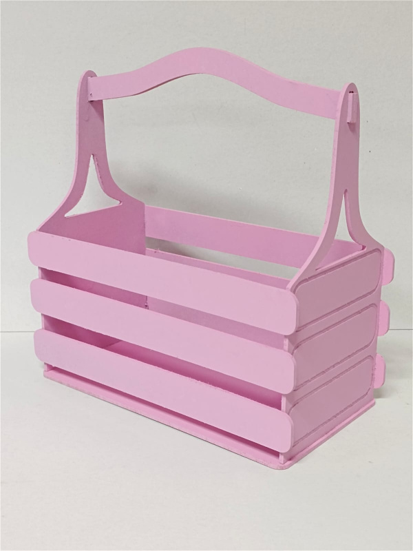 Декоративный ящик из фанеры реечный прямоугольный 250*125 h255 нежно-розовый