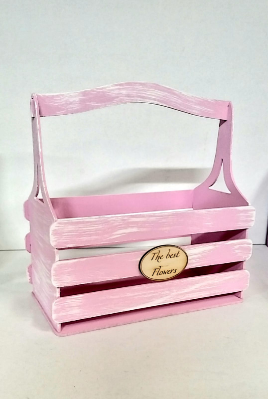 Декоративный ящик из фанеры реечный прямоугольный 250*125 h255 "Прованс с декором" нежно-розовый