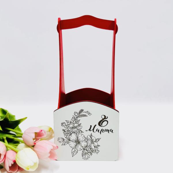 Декоративный ящик квадратный с высокой ручкой 140*125*h300 8 марта цветы красный