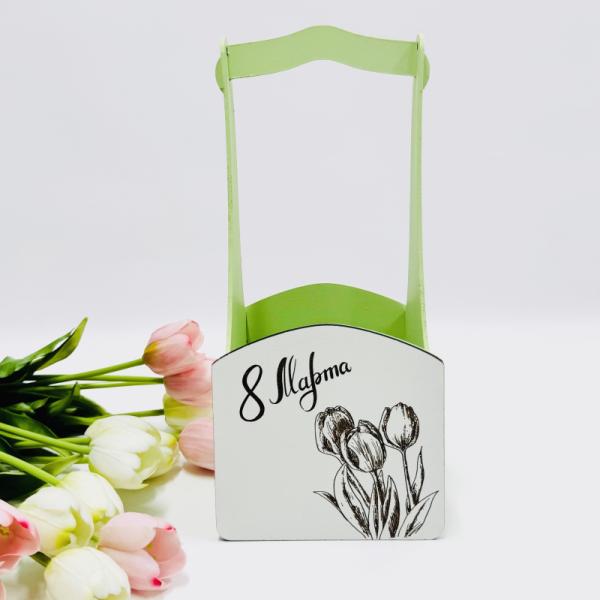 Декоративный ящик квадратный с высокой ручкой 140*125*h300 8 марта тюльпаны фисташковый