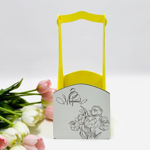 Декоративный ящик квадратный с высокой ручкой 140*125*h300 8 марта тюльпаны сливочно-желтый