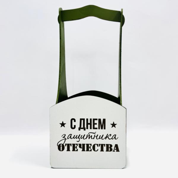 Декоративный ящик квадратный с высокой ручкой 140*125*h300 "С днем защитника отечества" хаки