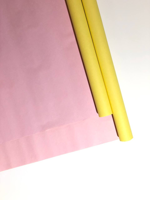 Бумага матовая пл. 60 гр. двухсторонняя .пыльная роза/жёлтый пастель 70 см*9 ярд ± 5%