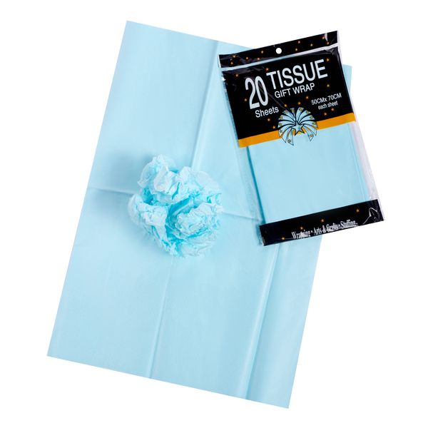Тишью Бумага, 20 листов в упаковке, 30 грамм, 50cmx66cm, цв. небесный