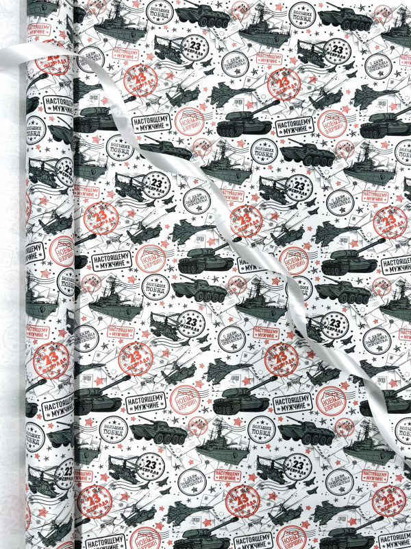 Крафт бумага 23 февраля техника серый на белом 700мм/60гр/10м ± 5%