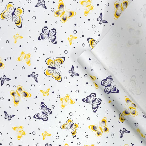 Крафт бумага Бабочки фиолетовый/желтый на белом фоне 720мм/60гр/10м ± 5%