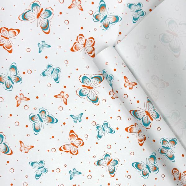 Крафт бумага Бабочки оранжевый/тиффани на белом фоне 720мм/60гр/10м ± 5%*