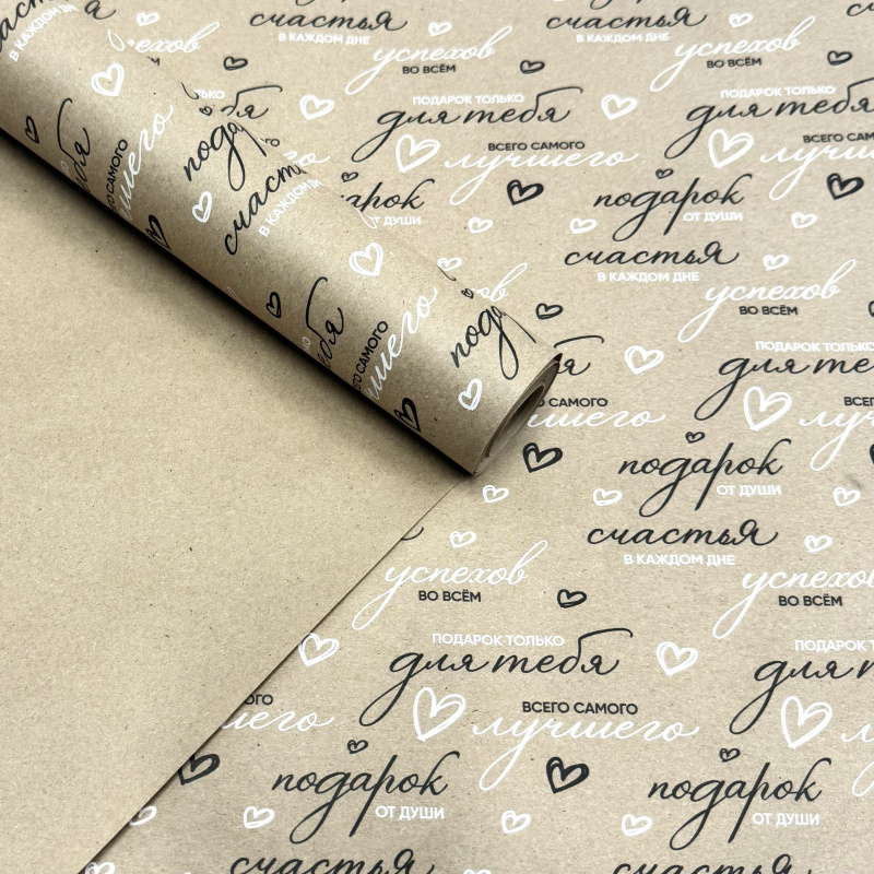 Крафт бумага Для тебя! черный/белый на коричневом 700мм/60гр/10м ± 5%