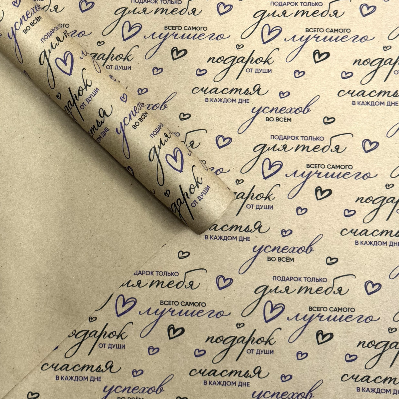 Крафт бумага Для тебя! черный/сиреневый на коричневом 700мм/60гр/10м ± 5%