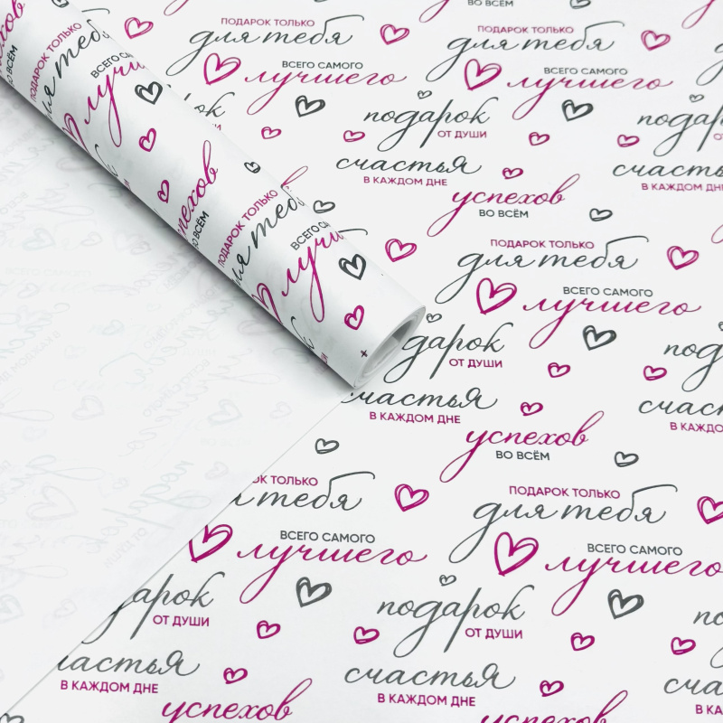 Крафт бумага Для тебя! графитовый/ярко-розовый на белом 700мм/60гр/10м ± 5%