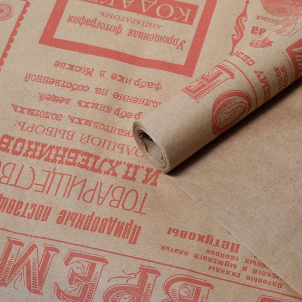 Крафт бумага "Газета Новости" красная на коричневом фоне 70 см*8,5 ярд ± 5%