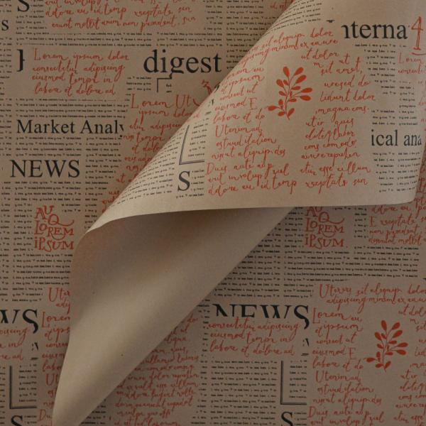 Крафт бумага "Газета" цв.черно-красный на коричневом фоне 720мм/60гр/60мкр/10м± 5%