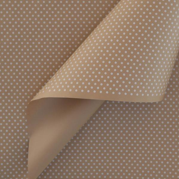 Крафт бумага "Горох" белый цв. на коричневом фоне 720мм/60гр/60мкр/10м± 5%
