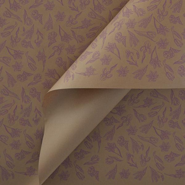Крафт бумага "Ирисы" яркий сиреневый цв. на коричневом фоне 720мм/60гр/10м± 5%