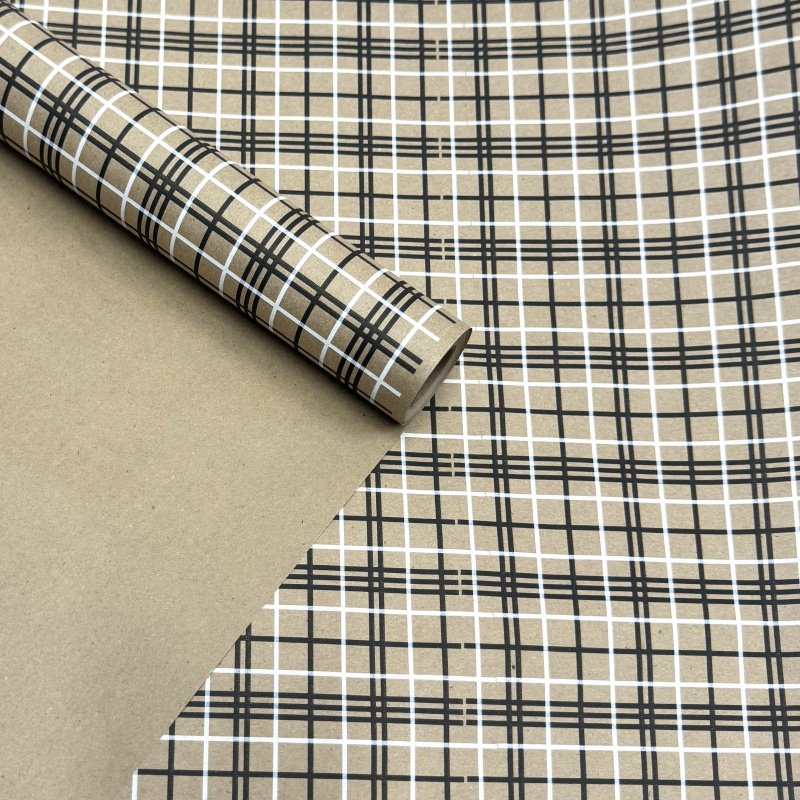 Крафт бумага Клетка черный/белый на коричневом 700мм/60гр/10м ± 5%
