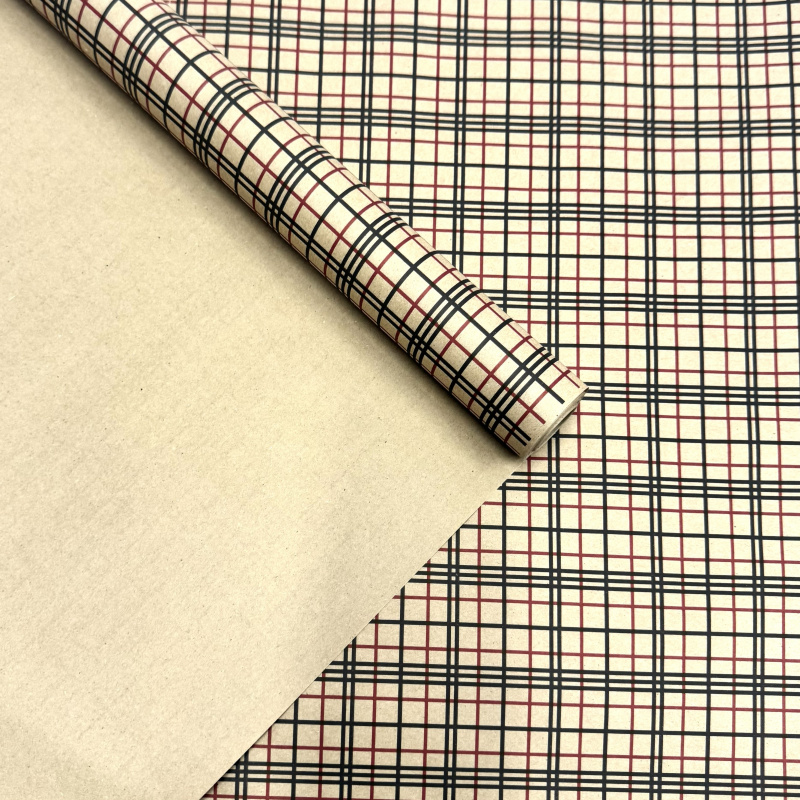 Крафт бумага Клетка черный/красный на коричневом 700мм/60гр/10м ± 5%