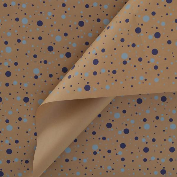 Крафт бумага "Конфетти" синий/голубой цв. на коричневом фоне 720мм/60гр/10м± 5%
