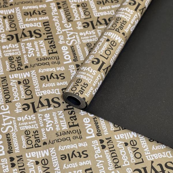 Крафт бумага "Love story"двухсторонняя черный/белый на коричневом фоне 70см/60гр/10м± 5%