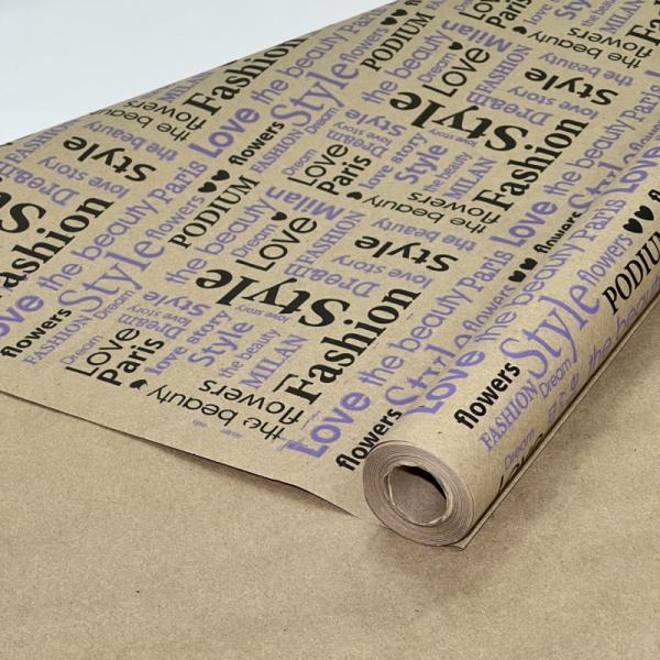 Крафт бумага "Love story"цв.черный/сиреневый на коричневом фоне 70см/60гр/60мкр/10м± 5%