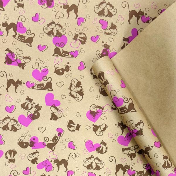 Крафт бумага Ля Мур коричневый/розовый на коричневом фоне 720мм/60гр/10м ± 5%